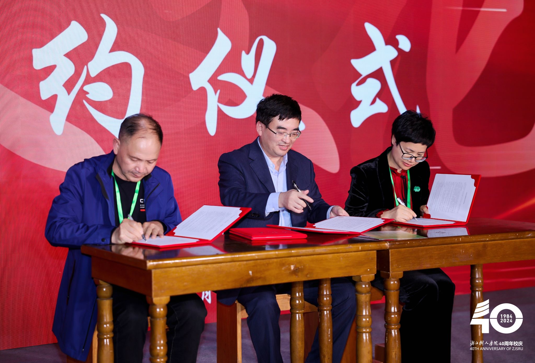 在庆典尾声,经济与民生福祉学院夏晴院长与武夷山玖鹤岩茶茶业有限责任公司、杭州艺福堂茶业有限公司共同签署了实践基地合作协议;茶文化贸易专业负责人张星海教授与中国采茶舞曲博物馆、浙江日茗康茶叶有限公司签署了产教合作协议。这些协议的签署将进一步推动茶文化专业产学研的创新发展,为树人茶文化的未来发展注入新的动力。