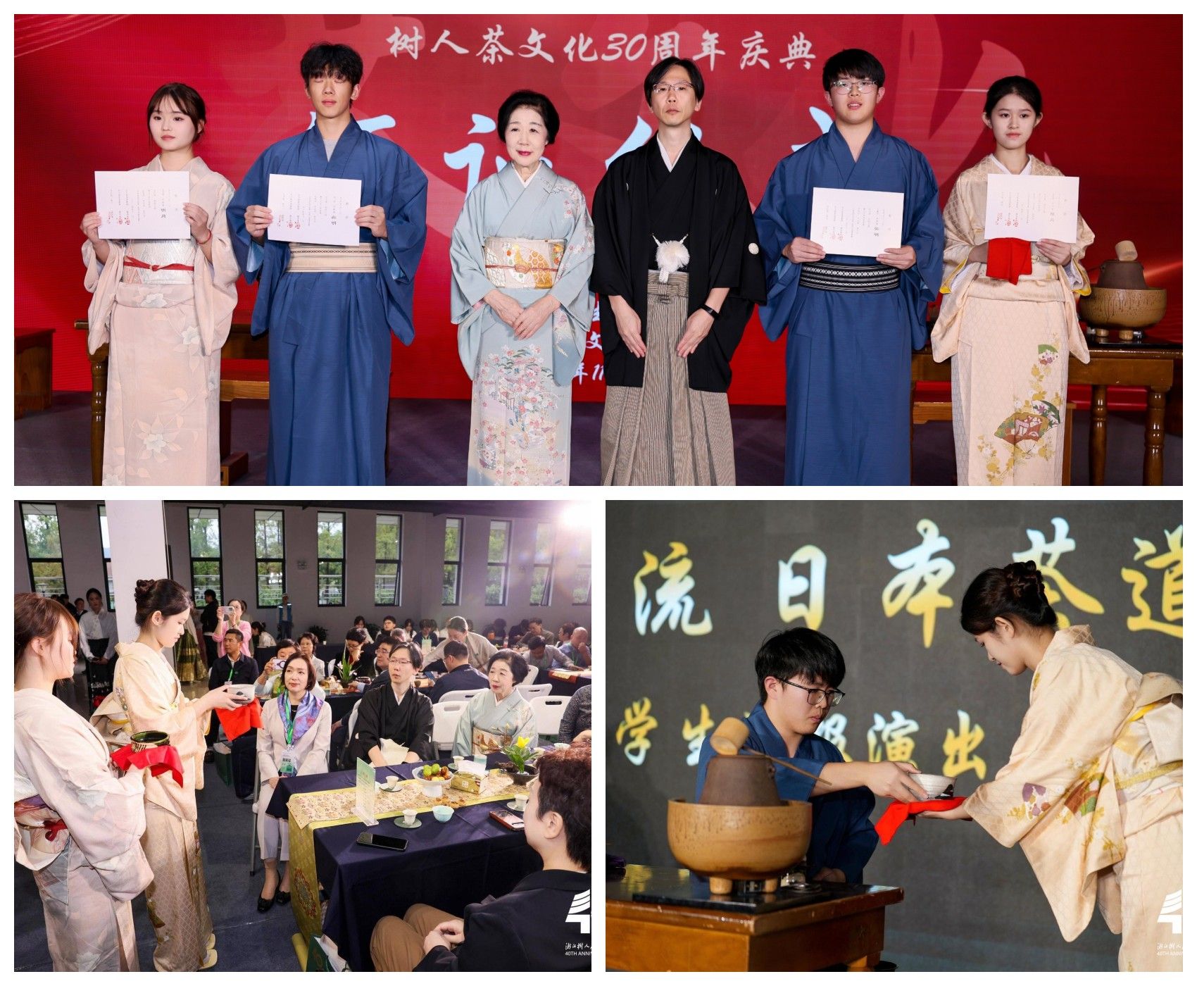 朱红缨教授回顾了90年代初,与王家扬老领导及海内外茶人、科研院所等一起齐心协力共同创办树人茶文化的点点滴滴,分享了她对茶文化教育的感悟,在场的全体人员都深受感动。首届树人茶文化专业业师、中国著名茶文化学者姚国坤研究员也发表了情深意切的讲话,他回顾了30年前在树人与学生一起学习的欢乐时光,并祝愿树人茶文化未来更好。为了表彰创办之初为树人茶文化教育作出过卓越贡献的老师们,现场特向姚国坤、阮浩耕、大岛丽月三位专家颁发了“树人茶文化卓越贡献奖”。