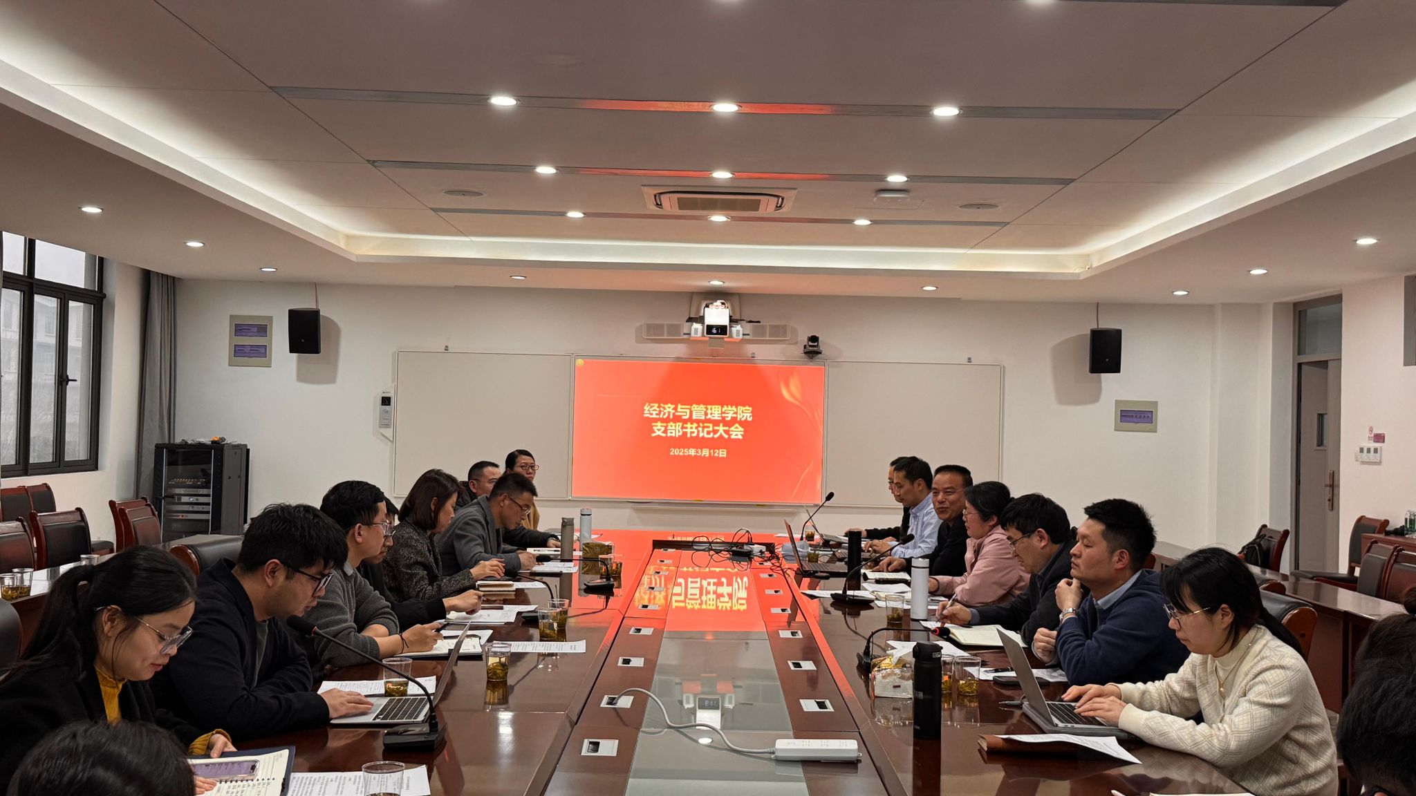3月12日,经济与管理学院在尚德园2-308会议室召开新学期第一次支部书记工作会议,部署落实本学期党支部重点工作和近期工作。学院党委书记张亚珍、党委副书记黄秋波、组织员来见祥,宸阳书院直属党支部书记王璀、明哲书院直属党支部书记陈安龙以及各党支部书记参加会议。