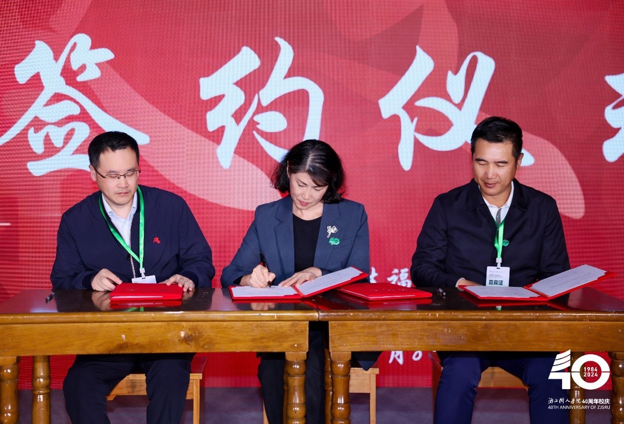 树人学院经济与民生福祉学院院长夏晴与企业进行现场签约。浙江树人学院供图