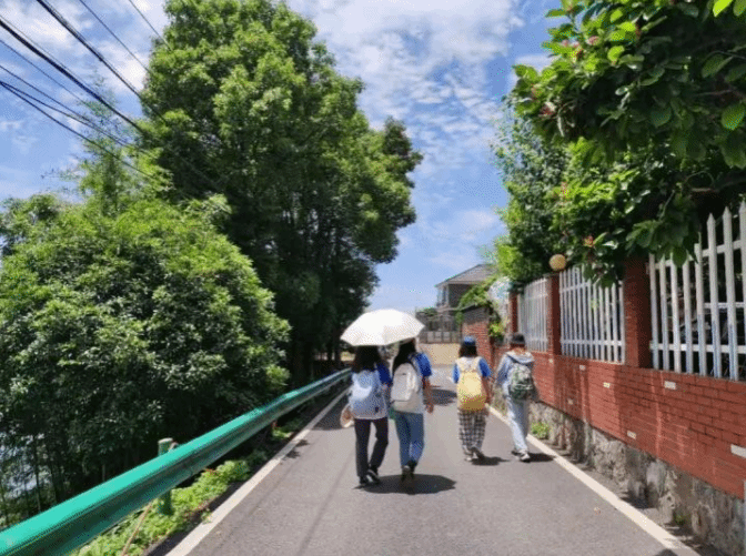 在径山镇小古城村,农村职业经理人唐文铭给同学们讲解了村史和村子旅游业发展情况。看到乡村社区的美好景象,有同学开玩笑说“我都想嫁到这个村子里来”。